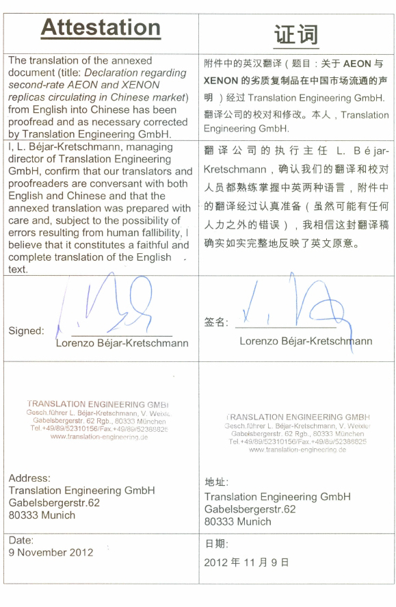 關(guān)于AEON與XENON停產(chǎn)謠言和復制品在中國流通的聲明