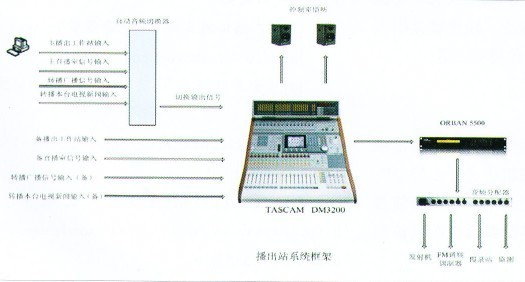 我臺目前播出量為每天十六小時,除去每天四小時的直播和兩個半小時的轉(zhuǎn)播,其余九個半小時均為錄播節(jié)目,因此從節(jié)目制作需求方面考慮,配置了三個音頻錄制站點。除了調(diào)音臺的型號和直播臺不一樣之外,其余周邊配置如播音員話筒、CD播放機、監(jiān)聽音響、監(jiān)聽耳機等都相同。而整個錄制的核心設(shè)備則選用了TASCAMDM3200 48軌數(shù)字調(diào)音臺,它有16路帶高品質(zhì)放大器的HIC、線路輸入,兩路S/PDIF或AES/EBU數(shù)字輸人,它還為音樂制作者提供了豐富的數(shù)字效果音效,既簡化了周邊設(shè)備也讓文藝錄制變得更為輕松。