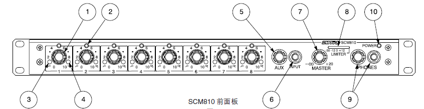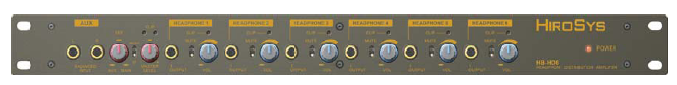 前面板上設(shè)置了6組可獨立調(diào)節(jié)音量的6.3mm立體聲耳機輸出插座,每一輸出組上設(shè)置一個峰值信號指示燈,當(dāng)指示燈閃亮?xí)r,表示信號過大,可以通過調(diào)節(jié)對應(yīng)的旋鈕順時針(調(diào)大),逆時針(調(diào)?。﹣碚{(diào)整。