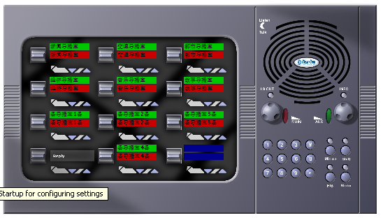 此面板上有11個可以上下?lián)軇拥目刂奇I和相應(yīng)的信息顯示屏(顯示不同的導(dǎo)播室名稱和總控室名稱),一個REPLY回復(fù)鍵和相應(yīng)的信息顯示屏,一個揚聲器,音量增益調(diào)節(jié)旋鈕,撥號盤和一些功能鍵組成。如果你要進行通話,就找到顯示屏上顯示的目的地的控制開關(guān)(如新聞導(dǎo)播室),往下?lián)軇右幌驴刂奇I,這時顯示屏下方的狀態(tài)燈變成高亮度的紅色,說明你選擇的目的地新聞導(dǎo)播室已經(jīng)聯(lián)通,你可以對著話筒進行通話。通話完畢,必須要往下?lián)軇右幌聞偛庞眠^的開關(guān)來斷線,不然會一直占用線路,其他人呼叫不到你。