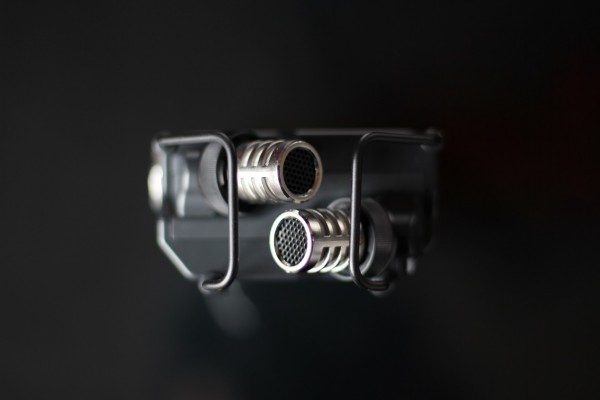 圖八:內(nèi)置的是一對XY制式的立體聲電容話筒,配備了防震支架(減少手持時的晃動),以及防摔護(hù)架。