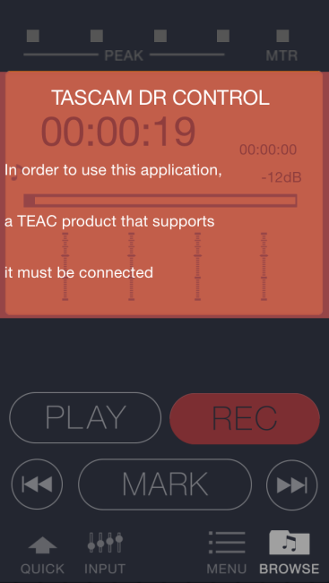 圖十七:主界面會提示需要連接上TEAC的設(shè)備,似乎預(yù)見將會有越來越多的TASCAM產(chǎn)品會支持WIFI無線控制的。