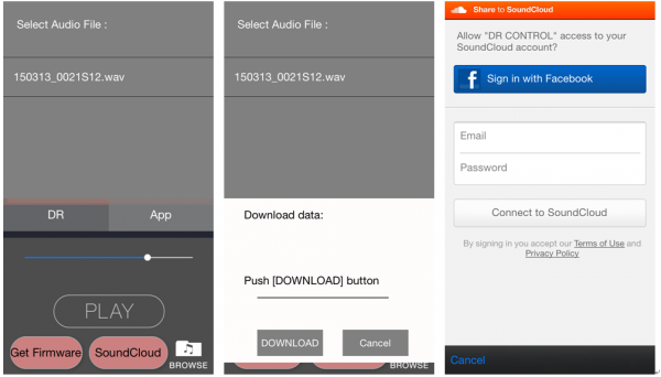在未連接DR-44WL時,可以瀏覽從DR-44WL上傳輸?shù)绞謾C(jī)的音頻文件,也可以獲取新固件以及將音頻文件直接上傳到SoundCloud中。(如圖十八)