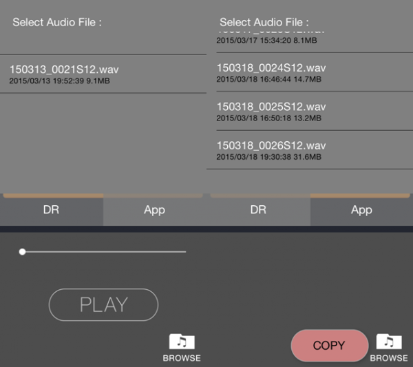 連接上DR-44WL之后,可以在DR control上瀏覽DR-44WL上的文件,可以點擊copy按鈕將文件復(fù)制至手機(jī)上。(如圖二十)