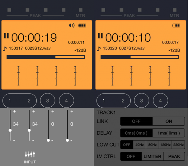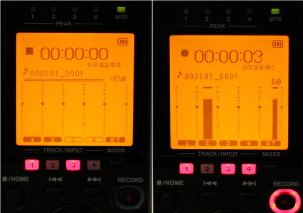 在4ch模式下通道1234固定對應(yīng)的是內(nèi)置話筒左/右以及外置輸入左/右。在準(zhǔn)備錄音狀態(tài)下,同時按下12/34可以拆分或組合立體聲道(不能組合內(nèi)置與外接通道)。
