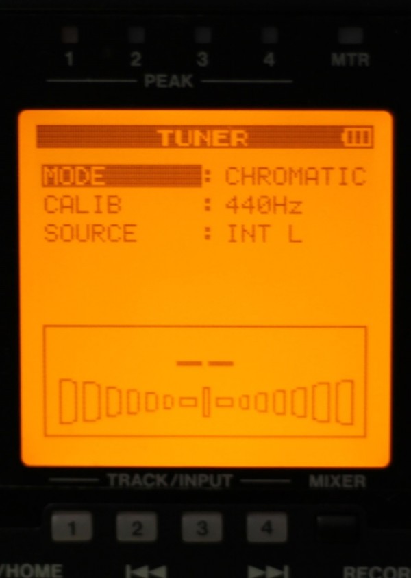 該模式與多軌錄音機(jī)的操作有點類似,你可以為每一條通道指定輸入通道(比如說通道1可以使用外置輸入1錄制;通道3也可以使用內(nèi)置話筒2來錄制以此類推。),也可以使用導(dǎo)航轉(zhuǎn)輪來選擇進(jìn)行錄制的位置。(不知道是個別問題還是目前固件BUG,在通道2上指定內(nèi)置話筒1的時候,輸入增益在錄音的時候會變小很多……)