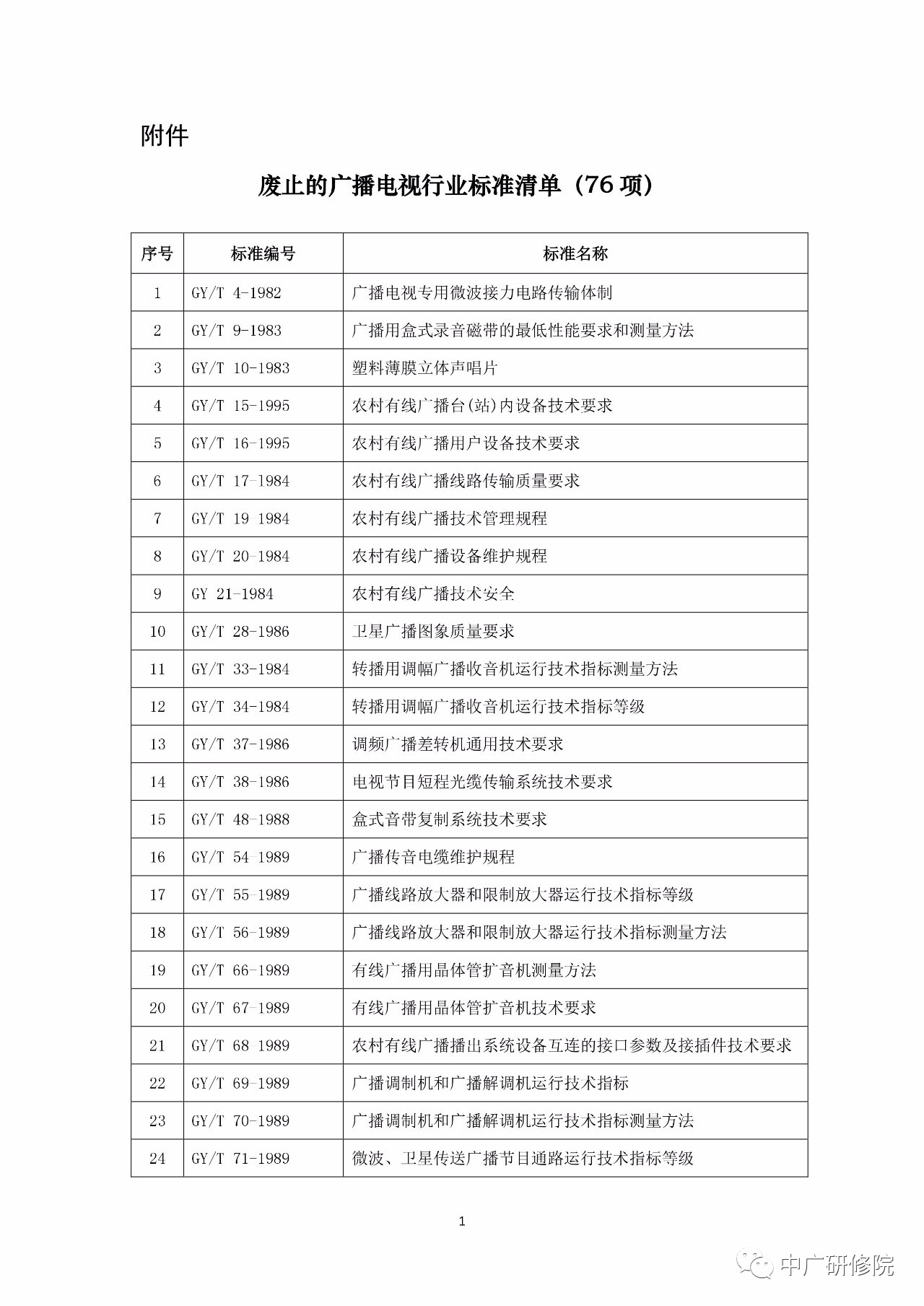 附件:廢止的廣播電視行業(yè)標(biāo)準(zhǔn)清單