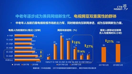 通過(guò)調(diào)研發(fā)現(xiàn),中老年將逐漸成為兼具網(wǎng)絡(luò)新生代和電視擁躉雙重屬性的群體。