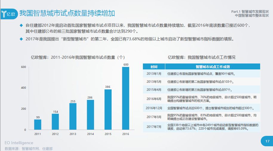 我國智慧城市建設(shè)雖落后于歐美地區(qū),但在政府的支持和企業(yè)的參與下,目前已取得階段性進(jìn)展:已有95%的副省級(jí)城市、83%的地級(jí)城市,總計(jì)超過500座城市,均明確提出或正在建設(shè)智慧城市。