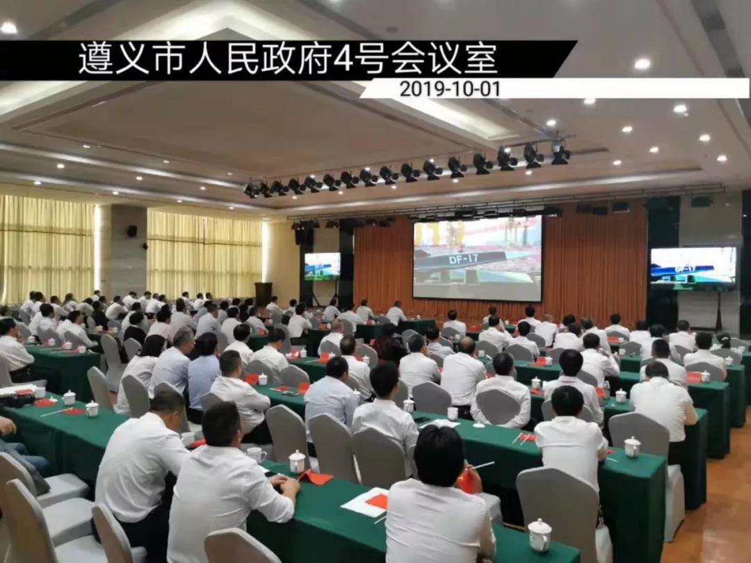 圖為:貴州各黨政機(jī)關(guān)單位干部、村居群眾通過(guò)貴廣網(wǎng)絡(luò)有線電視收看新中國(guó)成立70周年的慶典典活動(dòng)