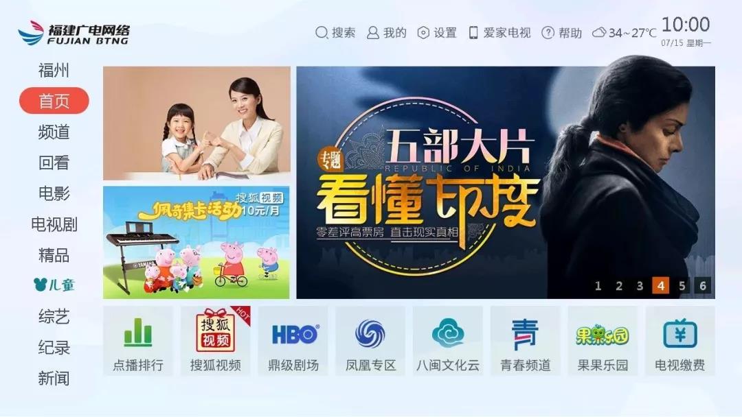 自2014年5月福建高清互動電視云平臺上線以來,歷經(jīng)多次升級優(yōu)化,四次迭代界面UI,每一次升級都給用戶帶來新層次的體驗,互動平臺活躍度居全國同行前列。平臺節(jié)目和應(yīng)用日趨豐富,高、標(biāo)清直播頻道多達(dá)200套,獨家傳輸央視4K超高清節(jié)目,提供92個頻道節(jié)目10天內(nèi)回看,電影院線、熱播劇、精品少兒、戲劇方言、黃岡名師課,以及卡拉OK、QQ音樂、電競游戲等內(nèi)容,讓用戶不僅可以看電視、用電視,還可以“玩”電視。平臺還聚合了優(yōu)酷、愛奇藝、騰訊三大視頻網(wǎng)站資源,讓喜歡追網(wǎng)劇的用戶擺脫手機、pad的小屏限制,享受大屏帶來的優(yōu)質(zhì)視聽感受。