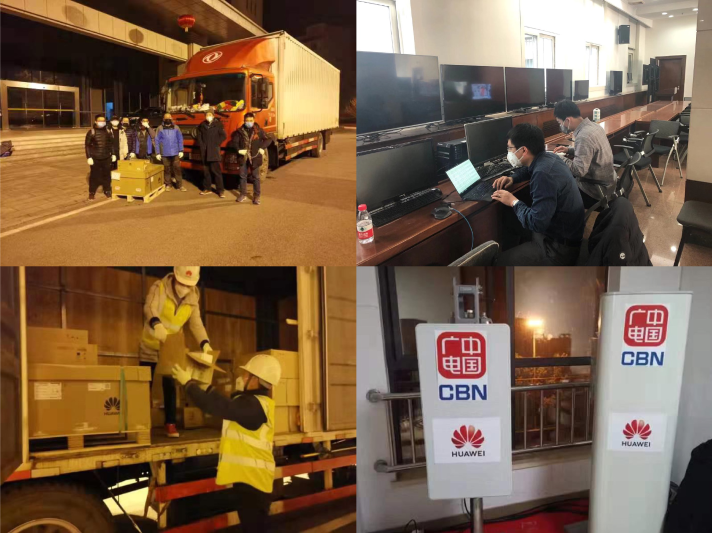 一是“急速72小時”推進,在湖北武漢新聞發(fā)布會現(xiàn)場實戰(zhàn)應用700MHz+4.9GHz中國廣電5G,在武漢雷神山醫(yī)院完成中國廣電5G基站安裝調試,免費為醫(yī)院工作人員及隔離區(qū)病人提供公共Wi-Fi服務。按照國家廣電總局的工作要求,中國廣電迅速行動、連夜作戰(zhàn),在湖北省委宣傳部、湖北省通信管理局的協(xié)助下,聯(lián)合湖北廣播電視臺、湖北廣電網(wǎng)絡公司、華為公司等,圍繞服務抗疫的共同目標,迅速行動,協(xié)同作戰(zhàn),在全民防疫、交通管制的特殊時期,緊急協(xié)調設備連夜從北京專車發(fā)往武漢,迅速開始安裝和核心網(wǎng)聯(lián)調優(yōu)化。自1月29日晚項目建設啟動,快速完成施工審批、1200公里長途運輸、網(wǎng)絡規(guī)劃、站點勘測、站點環(huán)境準備、中國有線和湖北廣電傳輸鏈路打通、基站安裝、核心網(wǎng)聯(lián)調、網(wǎng)絡優(yōu)化和業(yè)務調測等眾多環(huán)節(jié),創(chuàng)造了從北京5G核心網(wǎng)聯(lián)調到武漢基站開通僅用72小時的神奇速度。中國廣電5G基站在新聞發(fā)布會現(xiàn)場投入實戰(zhàn)應用,完成雷神山醫(yī)院中國廣電5G基站安裝調試,免費為醫(yī)院建設者、醫(yī)護人員及隔離區(qū)病人提供公共Wi-Fi服務。廣電5G在武漢疫區(qū)的開通發(fā)揮積極作用,得到湖北省委的高度肯定。