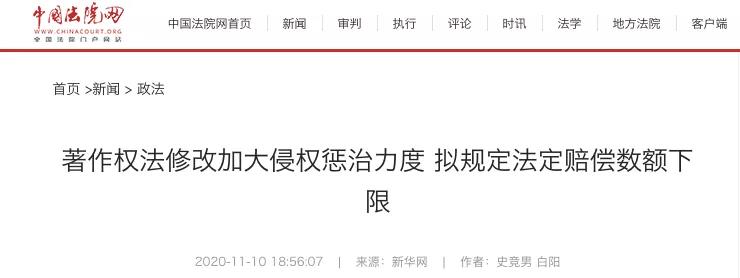 11月10日下午,著作權法修正案草案三審稿提請十三屆全國人大常委會第二十三次會議審議。