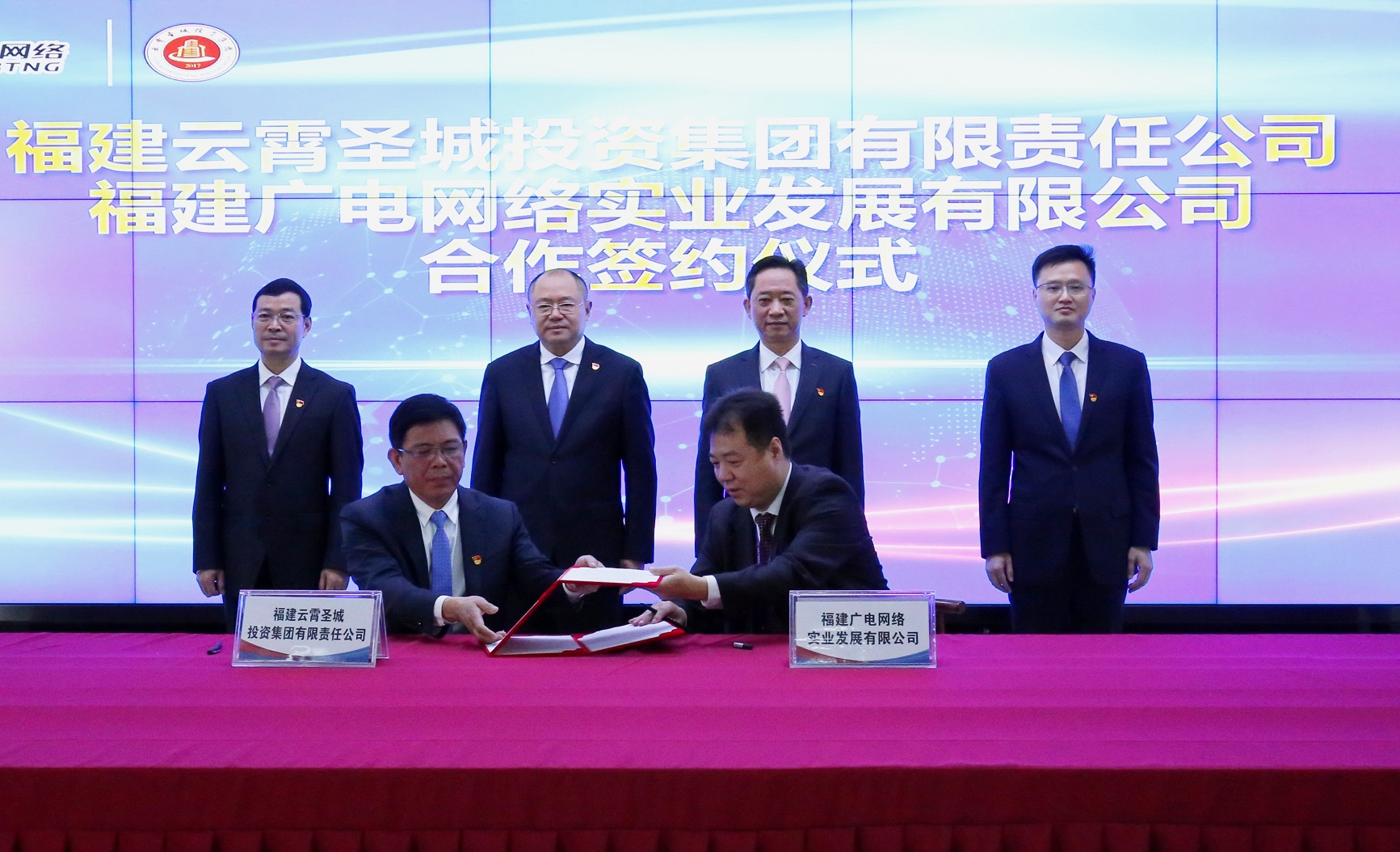 3月25日,福建廣電網(wǎng)絡實業(yè)發(fā)展有限公司與福建云霄圣城投資集團合作協(xié)議簽約儀式在漳州云霄縣融媒體中心舉行。福建廣電網(wǎng)絡集團黨委書記、董事長蔡琳,漳州市委常委、宣傳部部長劉偉澤,云霄縣委書記王金獅,以及福建廣電網(wǎng)絡集團漳州分公司、福建廣電網(wǎng)絡實業(yè)公司、圣城集團負責人出席簽約儀式。