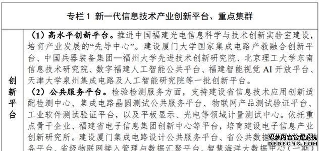 高性能集成電路。聚焦存儲器、光通信芯片、多媒體芯片、車規(guī)級芯片、第三代半導(dǎo)體芯片等領(lǐng)域,布局建設(shè)較大規(guī)模特色工藝制程生產(chǎn)線和先進(jìn)工藝制程生產(chǎn)線,積極發(fā)展先進(jìn)封裝測試,加快推進(jìn)芯片設(shè)計平臺(EDA 平臺)及配套知識產(chǎn)權(quán)庫(IP庫)的國產(chǎn)化,推動設(shè)計、制造、封測、材料、設(shè)備產(chǎn)業(yè)鏈一體化跨越發(fā)展。發(fā)揮海峽兩岸集成電路產(chǎn)業(yè)合作試驗區(qū)的示范帶動作用,形成以廈門、泉州為輻射高地的“一帶雙核多園”集聚發(fā)展格局。