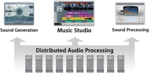 Logic 7最革命性的功能是什么?分布式音頻處理顯然是其中之一,只要有一臺(tái)蘋果電腦安裝了Logic 7,那么就可以使通過(guò)以太網(wǎng)連接的其它蘋果電腦協(xié)助處理音頻數(shù)據(jù),而不需要其它蘋果電腦安裝昂貴的Logic 7——只要安裝免費(fèi)的Logic Node Performance Patch軟件即可。這比Steinberg興師動(dòng)眾鼓搗出來(lái)的VST SystemLink每臺(tái)電腦都要安裝音樂(lè)軟件省錢的多的多。