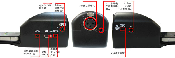 3)插入話筒,戴上耳機(jī), 就可以在線傳輸15K 音頻信號(hào); 或者通過iphone觸摸屏操作按鍵錄音;用FTP傳輸錄音信號(hào)。
