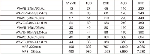 R-09HR各種模式SD卡最大錄音時(shí)間(單位:分)