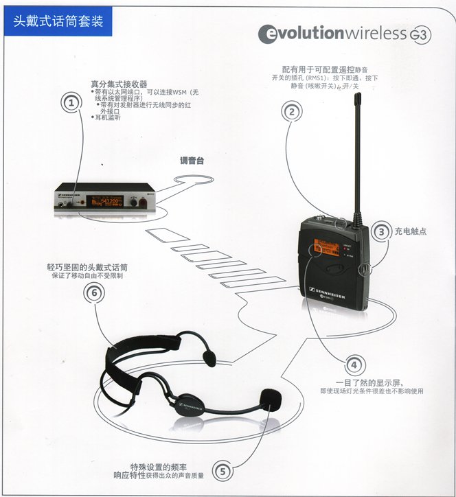 輕巧舒適的頭戴式話筒給演員絕對的行動自由,讓演員能夠更靈活的表演。高品質(zhì)的電容式話筒頭技術(shù)為你帶來清晰、透徹的聲音。全部機(jī)架式的 G3 300 系列的接收機(jī)都有以太網(wǎng)接口,這意味著你可以用運(yùn)行森海塞爾無線系統(tǒng)管理軟件的PC遠(yuǎn)程監(jiān)控全部無線系統(tǒng)。