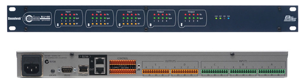 帶如同其他型號的Soundweb London設(shè)備一樣,12個邏輯輸入控制和6個邏輯輸出控制可以讓BLU-100方便的兼容GPIO設(shè)備。后面板的RS-232端口可以讓BLU-100與第三方控制設(shè)備完美結(jié)合,也可以簡單的控制一些第三方設(shè)備如投影機,顯示器,燈光控制設(shè)備等。以太乙網(wǎng)端口除子用于配置連接、控制和監(jiān)測,還可以用于一些使用IP控制協(xié)議的第三方控制系統(tǒng)中。