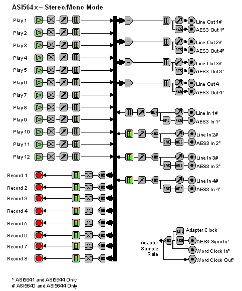 -- AES/EBU inputs and outputs with sample rate converters on all inputs (ASI5641, ASI5644 only)