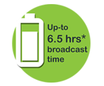 VIA帶有一個(gè)可再充智能鋰電池,可以提供高達(dá)6個(gè)半小時(shí)*的廣播時(shí)間。延長(zhǎng)電池使用時(shí)間,可通過(guò)以下措施:屏幕休眠時(shí)間,屏幕亮度控制,自動(dòng)低電池節(jié)電。