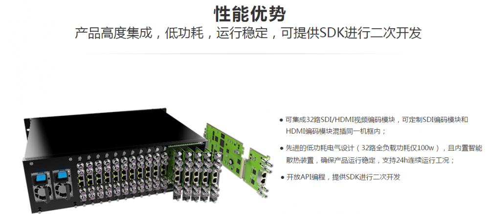 可集成32路SDI/HDMI視頻編碼模塊,可定制SDI編碼模塊和 HDMI編碼模塊混插同一機框內(nèi);