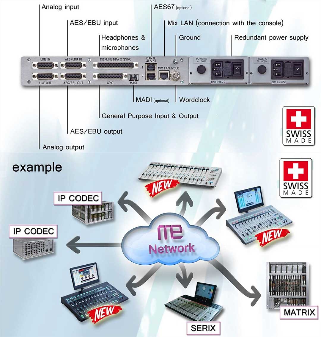 IMIX成為一個很好使用的核心工具成熟的,非常容易使用的技術(shù)特色,對于自己操作的主持人和技術(shù)人員來說是最理想和最需要的。更多的CIMIX 單元(一體化或模塊式)能夠連接在一起,建立一個網(wǎng)絡(luò)互動調(diào)音臺通用的數(shù)字直播調(diào)音臺CiMix 12/16推子鋁面板和1個多功能觸摸屏顯示組成,調(diào)音臺也可以是模塊式。安裝在電臺直播室的控制桌內(nèi)。中央處理器帶有交換機(jī)和DSP 電路,內(nèi)置于19 英寸機(jī)箱。二個設(shè)備都具有主備備份應(yīng)急電源,在使用中可以很容易的替代(故障)電源