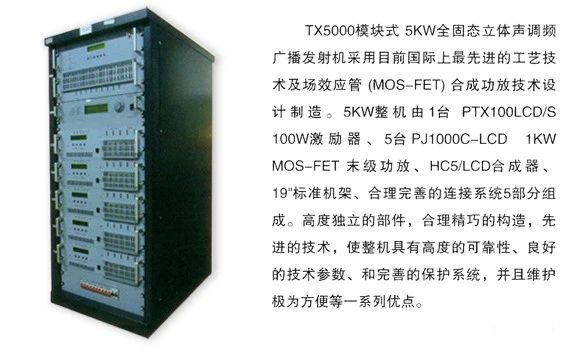 產(chǎn)品簡介:TX5000 5KW全固態(tài)立體聲調(diào)頻廣播發(fā)射機