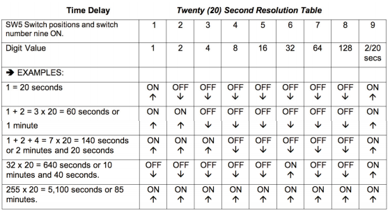 ?撥碼開關(guān)選擇恢復(fù)時間延遲從OFF到21分鐘,以20秒為增量。