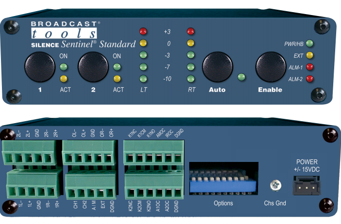 BroadcastTools?SilenceSentinel?Standard旨在監(jiān)視任何兩個立體聲模擬音頻源的靜音或異相狀況,極性,產(chǎn)生警報,并使用機械閉鎖繼電器透明地切換到備用源。 其他功能包括:前面板控件,遙控器輸入和狀態(tài)輸出; 插入式歐規(guī)螺釘端子; 撥碼開關(guān)選擇零參考以下-20,-25,-30和-35db的靜音檢測; 精確的警報定時延遲從關(guān)閉到85分鐘; 精確的恢復(fù)時間延遲從關(guān)閉到21分鐘。SilenceSentinel?Standard可以放置在臺式機上,也可以安裝在墻上或可選的RA-1機架擱板上,以在1-RU中最多安裝三個單元。