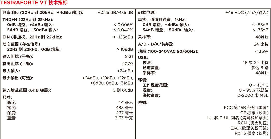 TesiraFORTé?VT是一款固定的I/ODSP,配備12路支持回聲消除(AEC)的模擬輸入和8路模擬輸出,并包含多達(dá)8路可配置USB音頻通道,一個(gè)雙通道VoIP接口和一個(gè)標(biāo)準(zhǔn)FXO電話(huà)接口。借助USB音頻,TesiraFORTé直接與USB音頻主機(jī)連接,并可充分利用當(dāng)今最先進(jìn)的會(huì)議解決方案。TesiraFORTéVT還提供了廣泛的音頻處理,包括但不限于:信號(hào)路由和混音、均衡、濾波、動(dòng)態(tài)和延遲以及控制、監(jiān)控和診斷工具,均通過(guò)Tesira軟件配置。TesiraFORTéVT最適合需要使用VoIP、放大聲音、混音和AEC的高品質(zhì)音頻解決方案的房間。