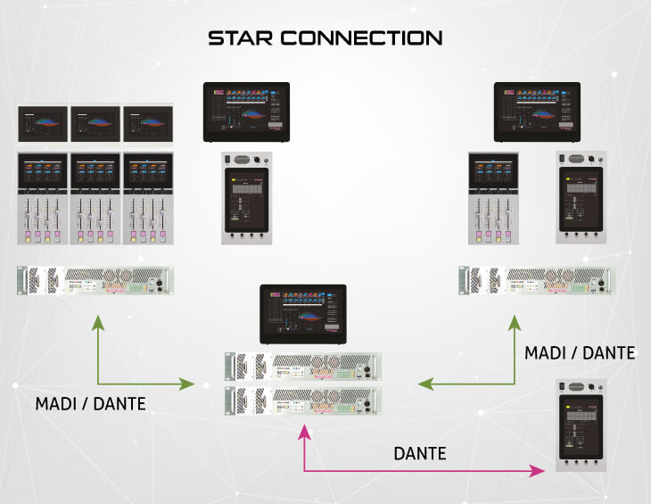 Modular DSP structure with 48 full processed I/O signal for every DSP boards