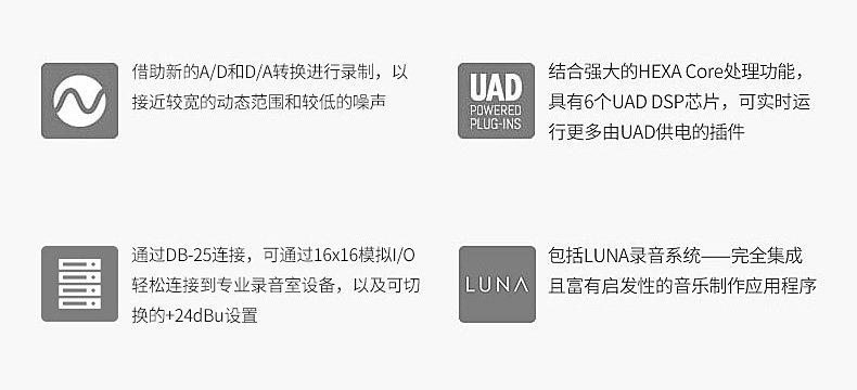 ? 清單:UA Apollo X16 音頻接口1臺(tái)、連接線1條、說(shuō)明書1份? UAD核心數(shù):6核